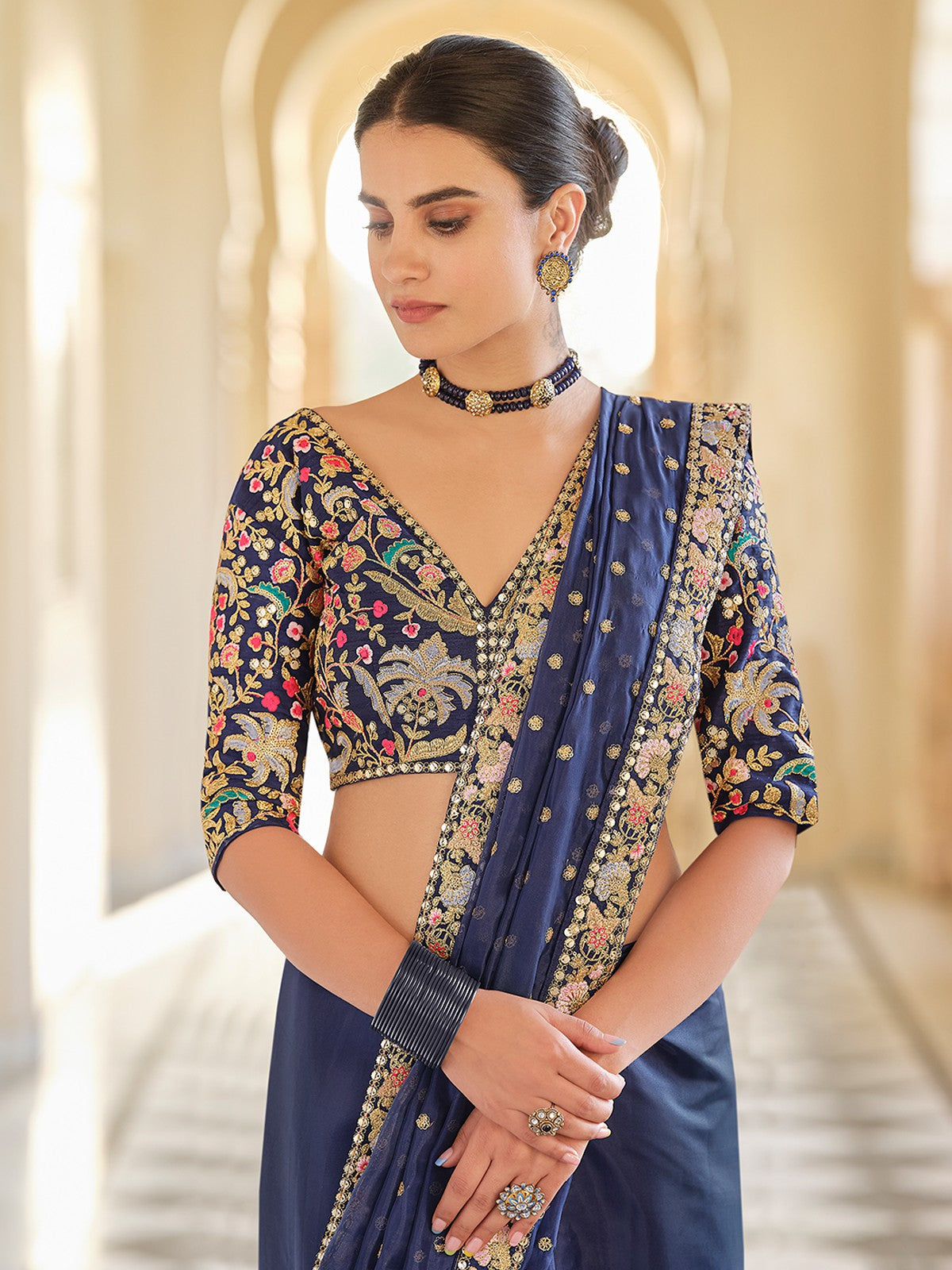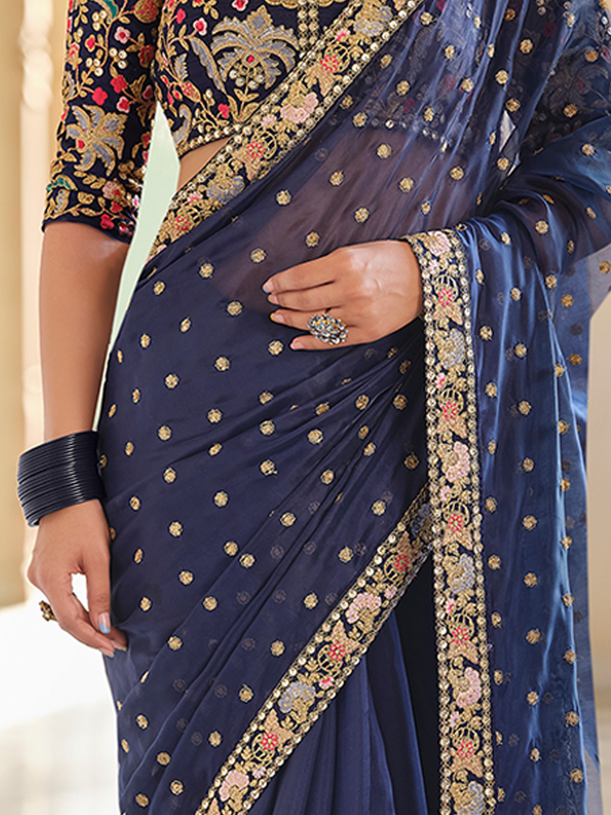 Feel extraordinary by adorning this Designer Organza Saree. This saree is highlighted with beautiful Sequins, Zari, Thread as shown. This saree is comfortable to wear and care.
