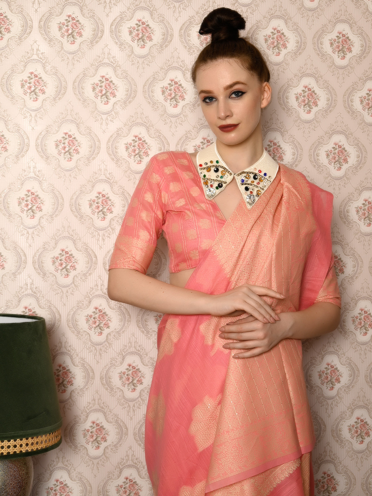 Festive and Wedding, this saree will be a perfect addition to your ethnic wardrobe, offering a soothing and pretty vibe the adornment of weaving makes it impeccable