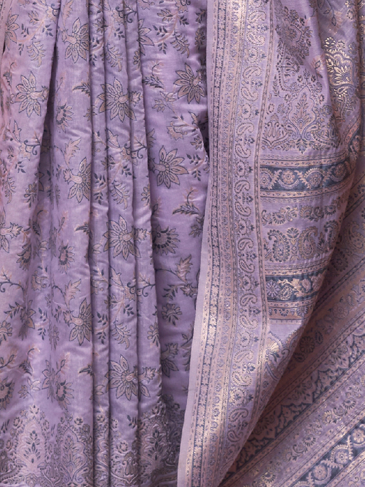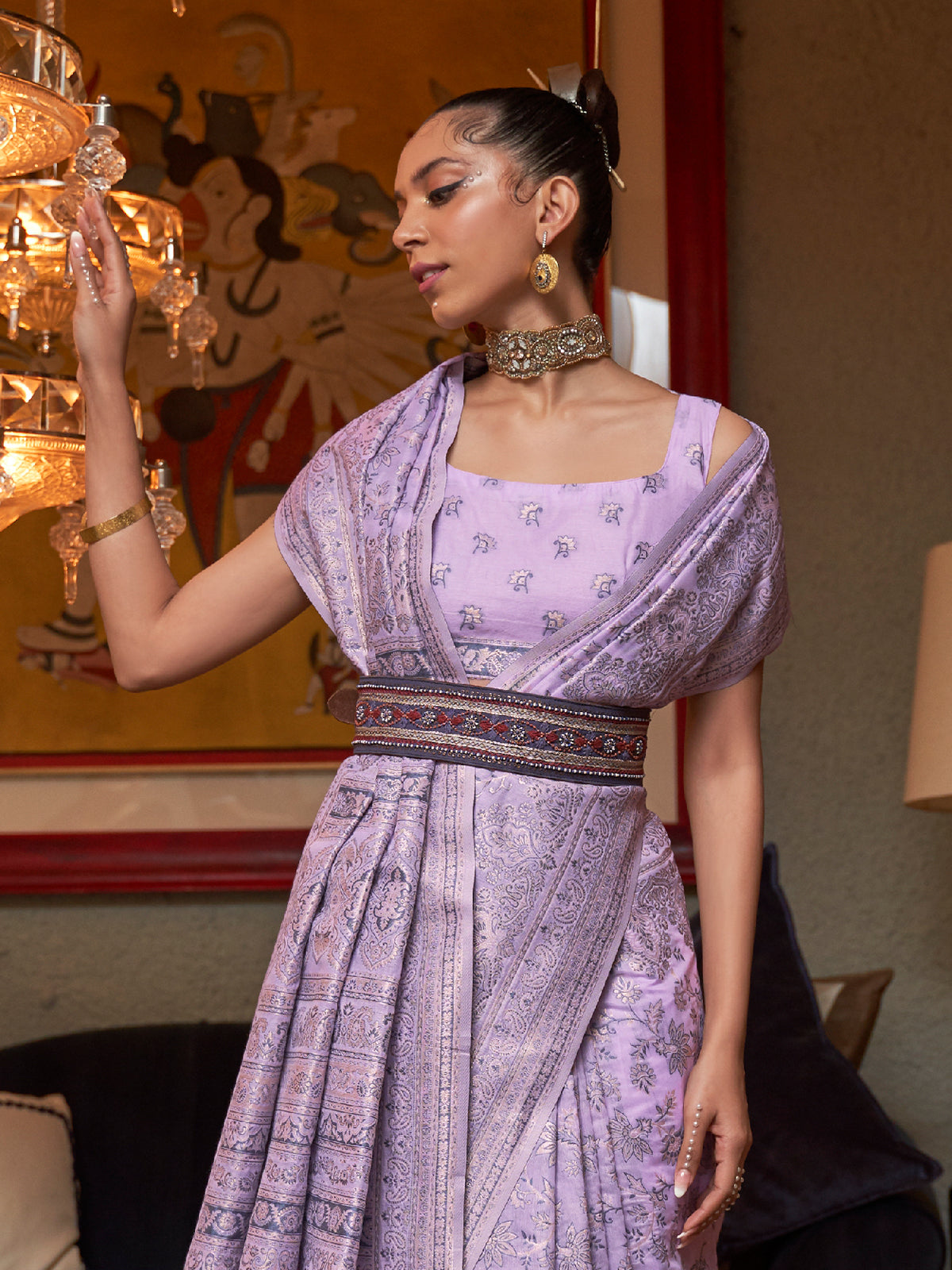 Rajwada Women Festive Purple Silk Blend Woven Saree With Unstitched Blouse