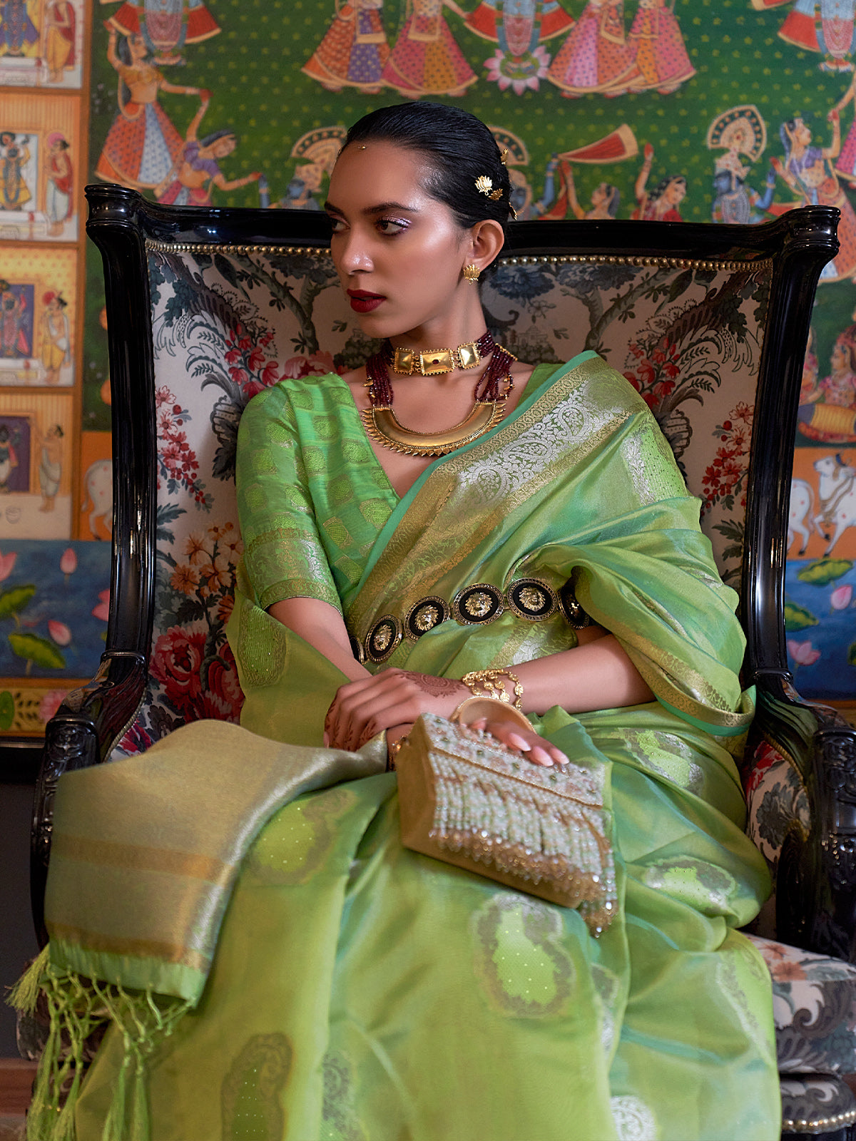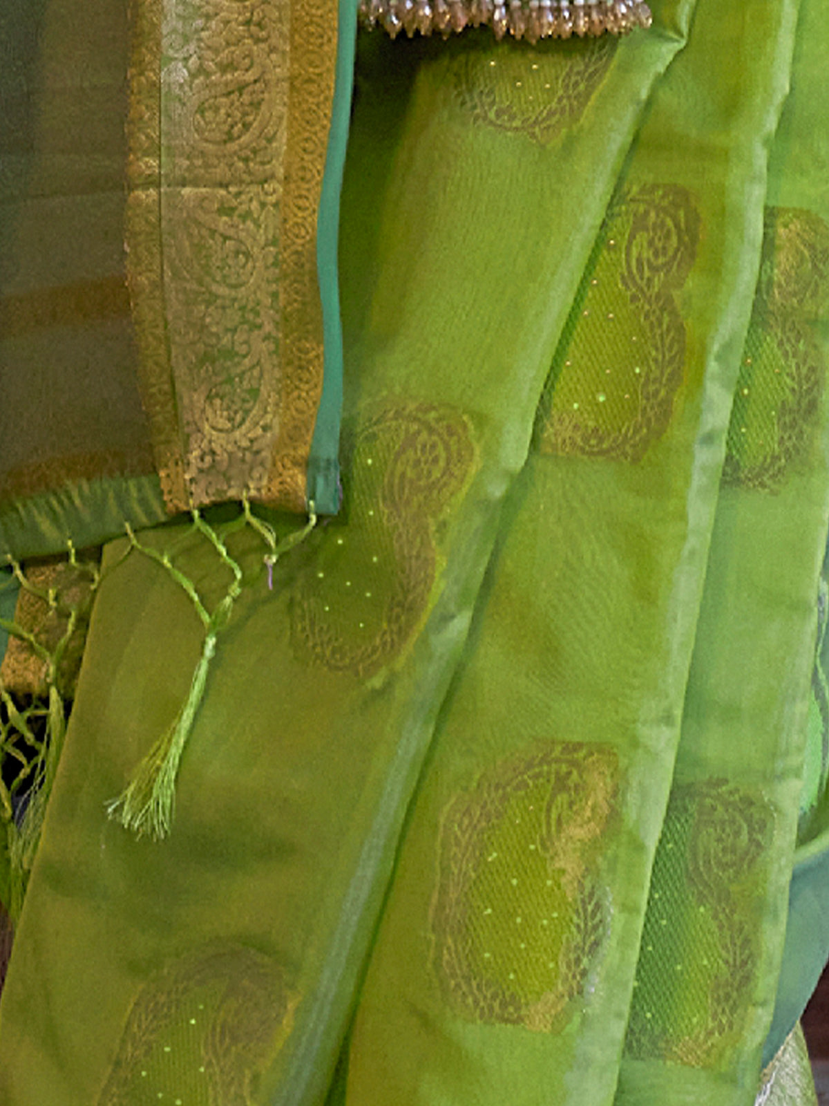 Feel Extraordinary By Adorning This Designer Organza Saree. This Saree Is Highlighted With Weaving.