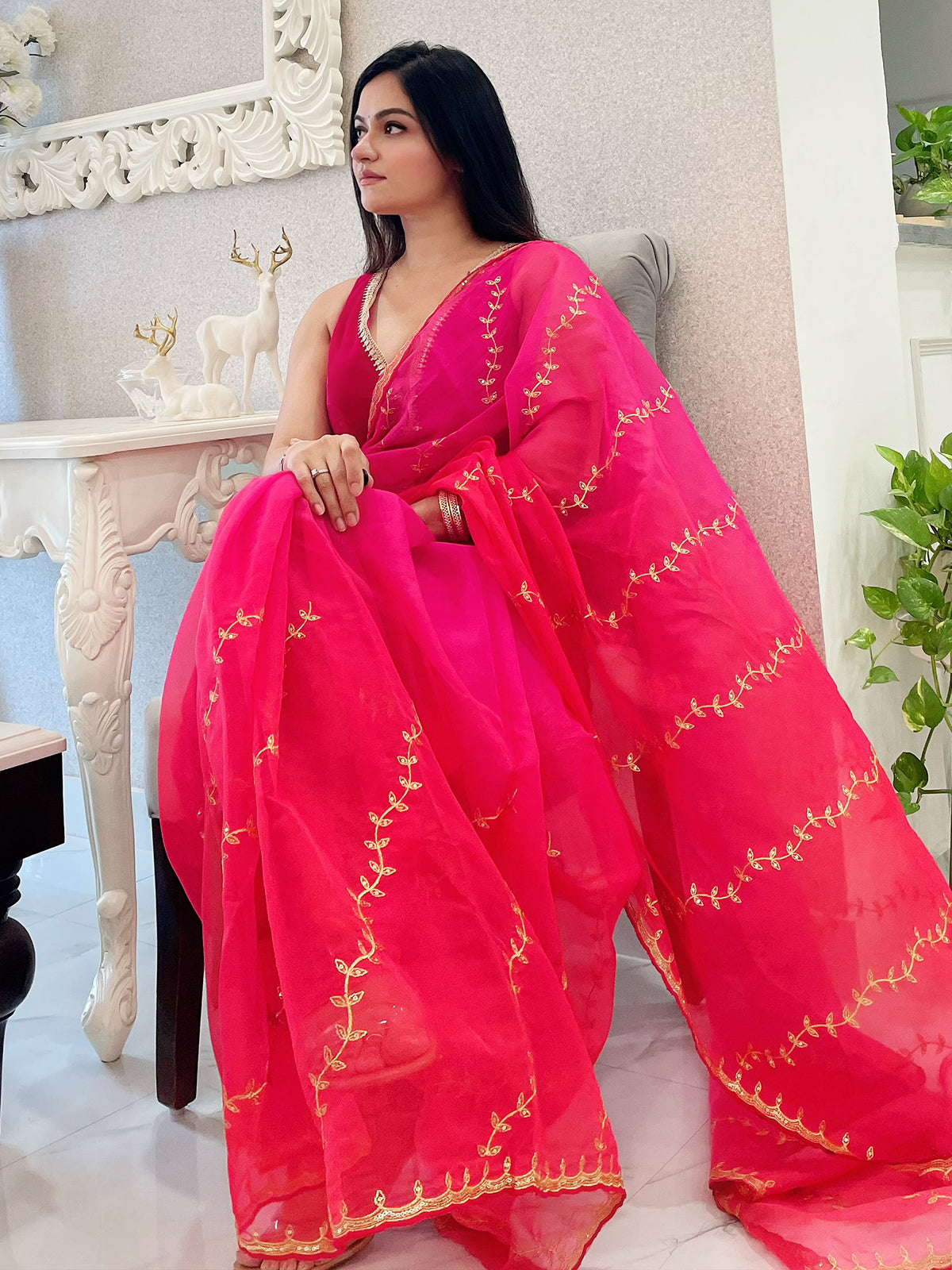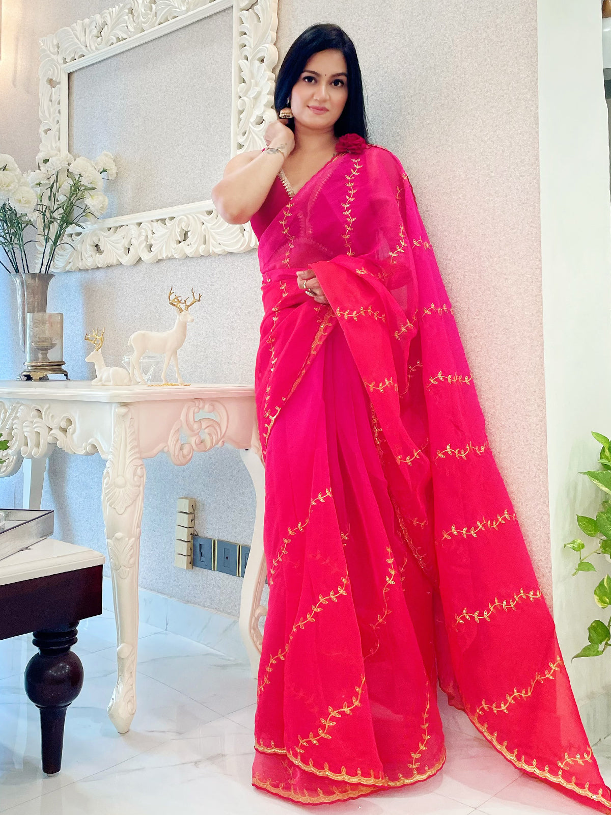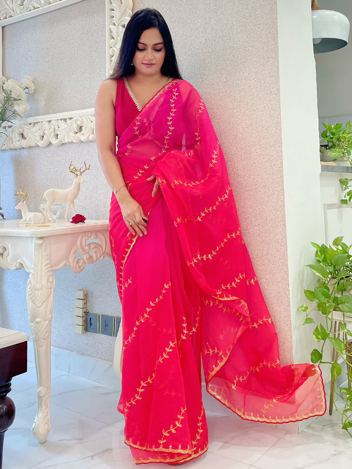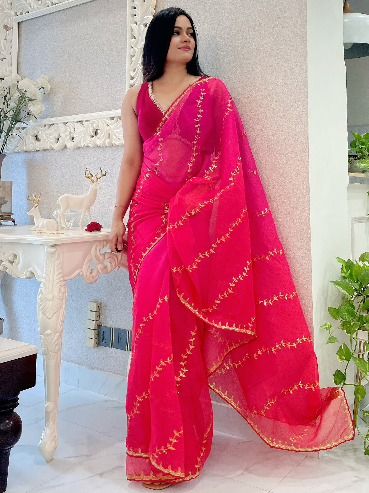 Gift yourself this lovely saree and be the cynosure wherever you go, Style this with a classy clutch and heels and you're good to go.