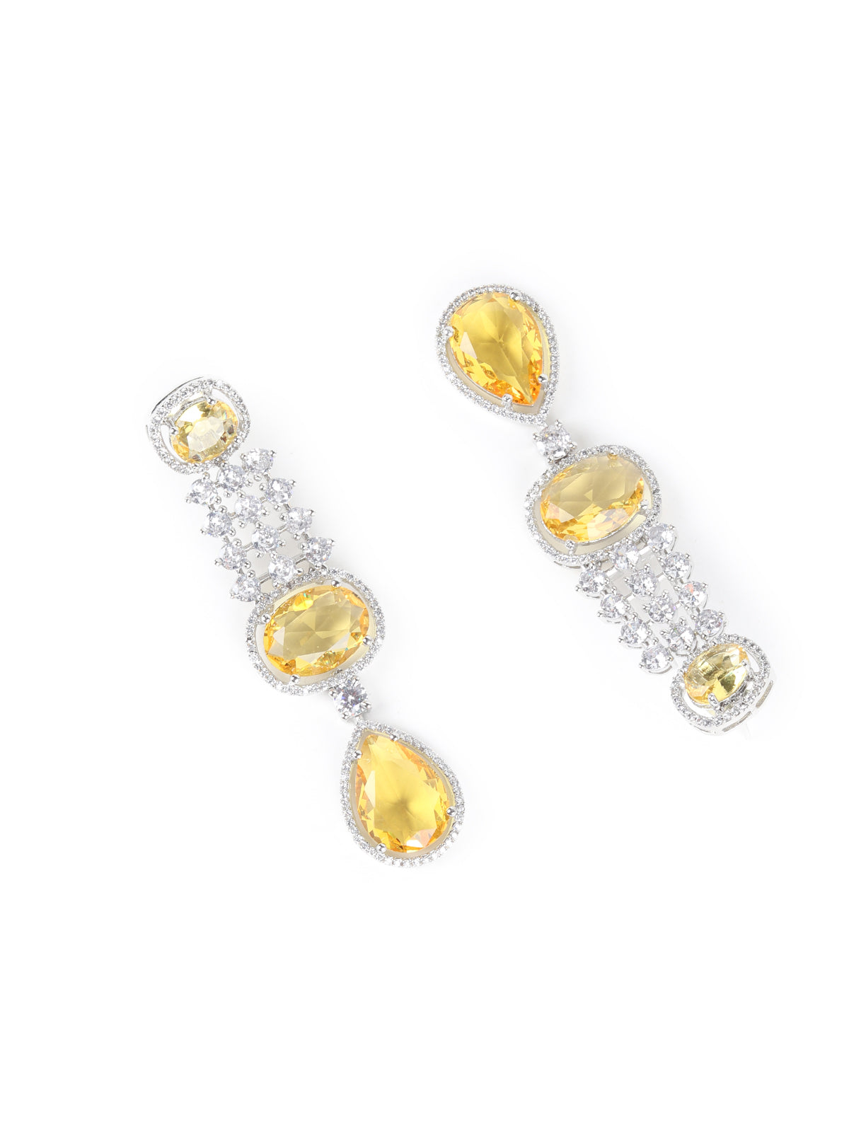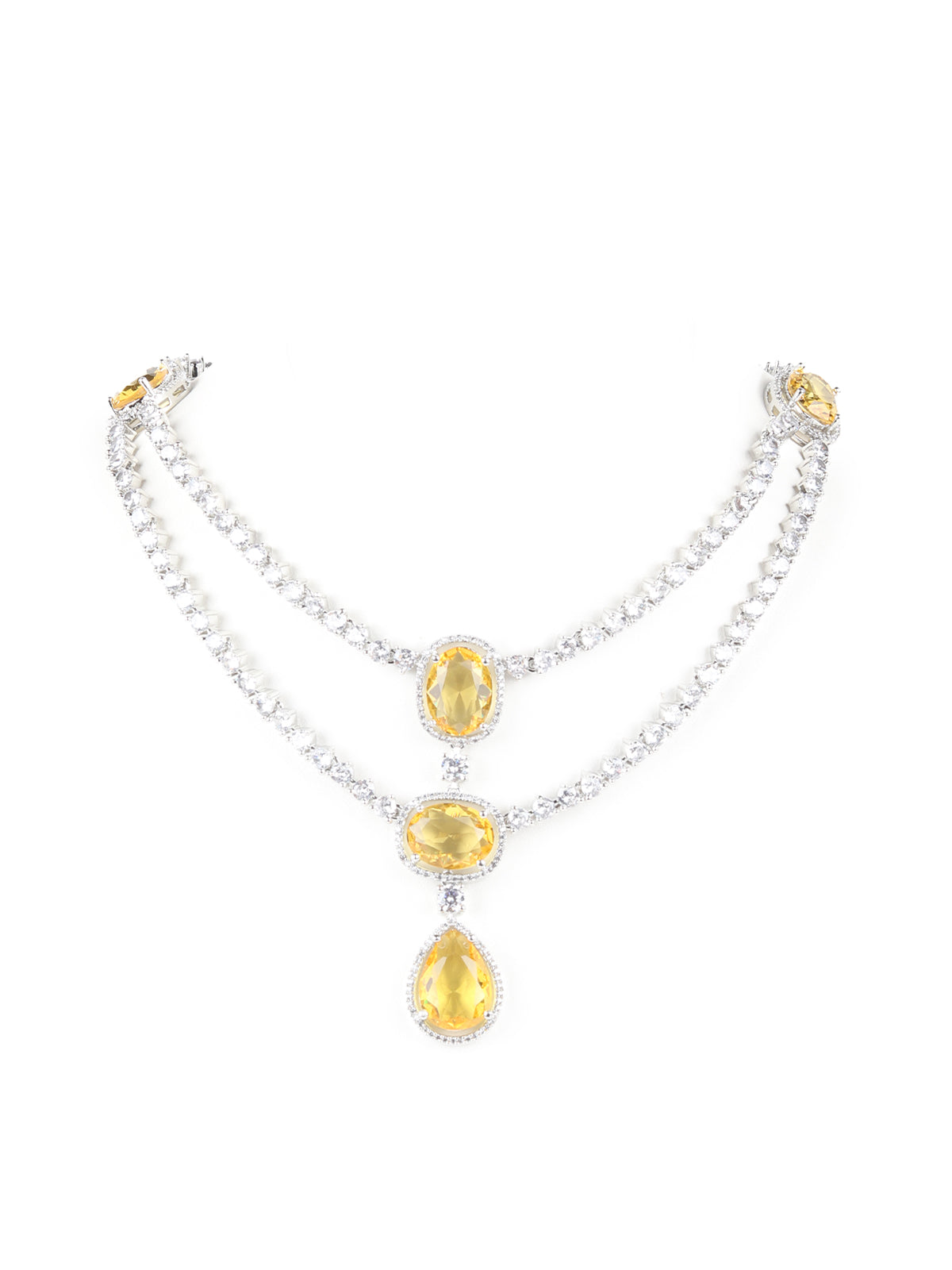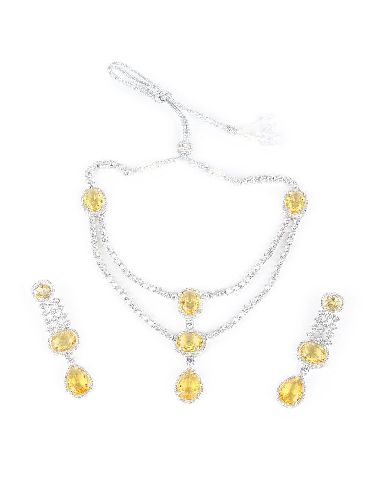 Make a statement with Rajwada's Yellow and Silver Zircon Necklace Set for Women. Radiate elegance and charm effortlessly. Shop now and stand out from the crowd