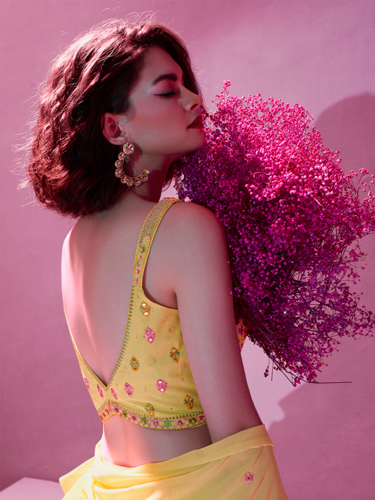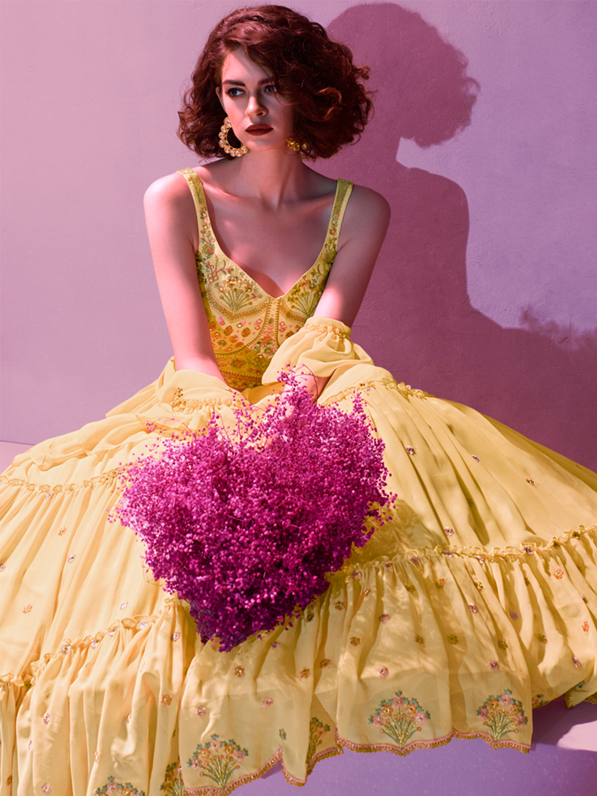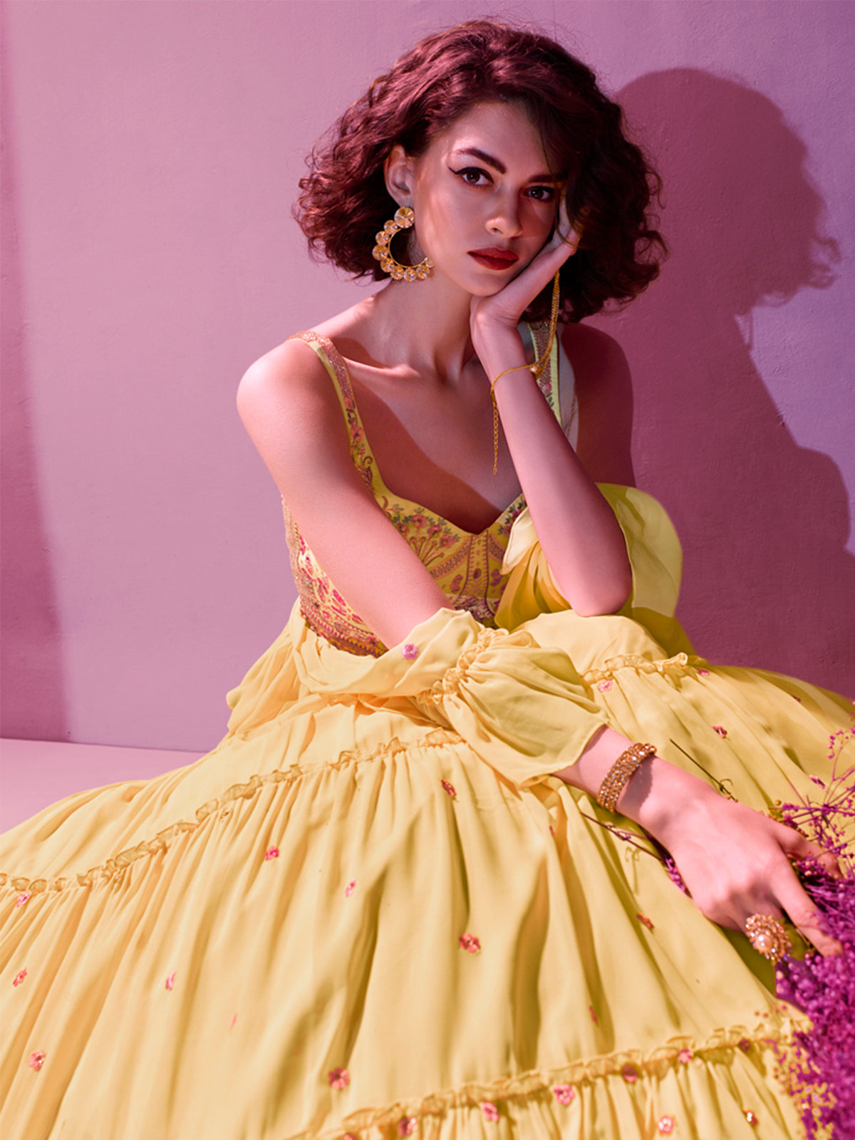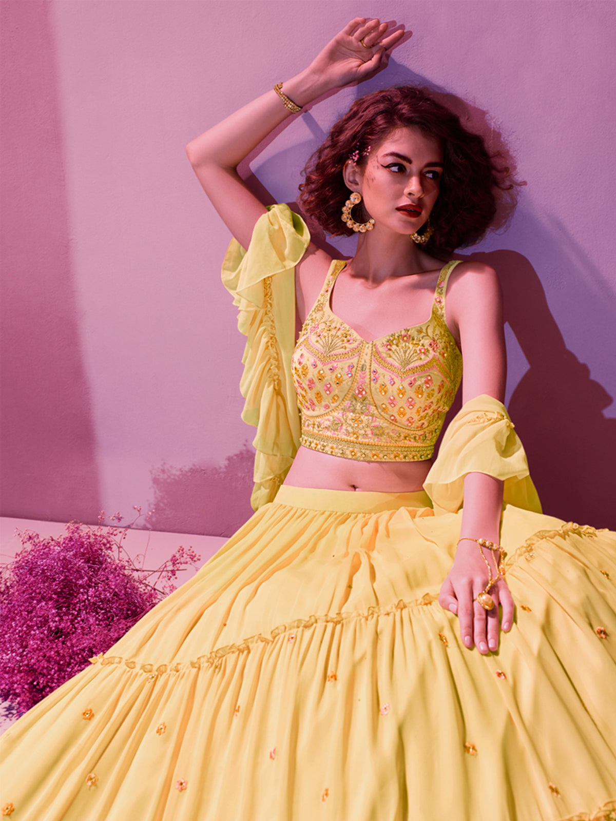 Re-define your style in the beautifully Thread and Hand Work Lehenga. Match it with a clutch and a pair of heeled sandals and you are ready to slay.