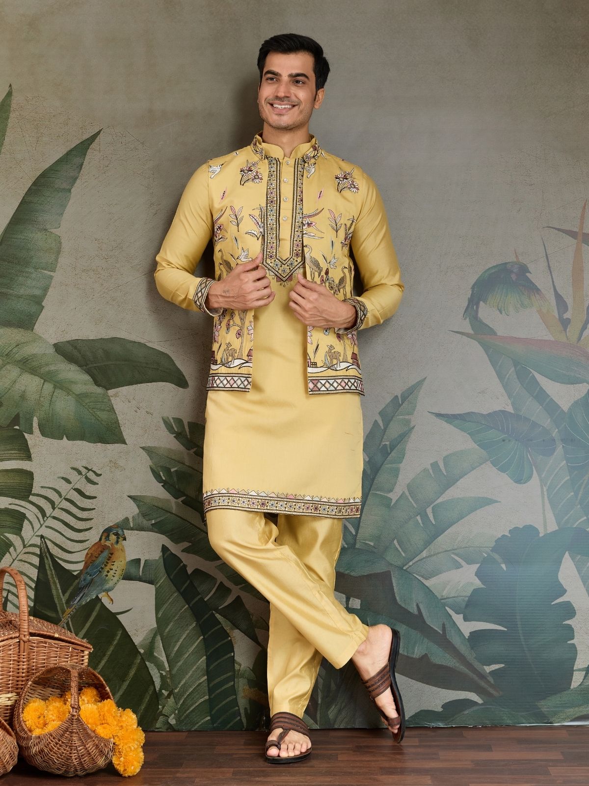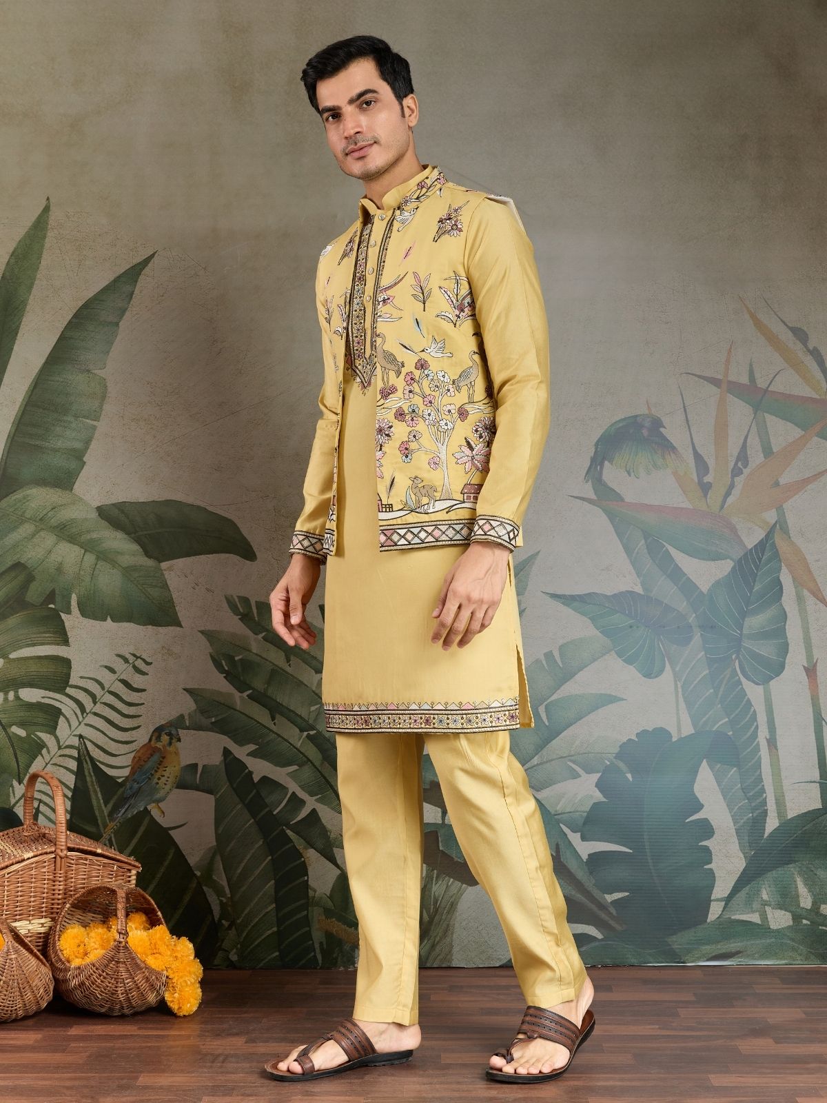Embrace timeless elegance with this traditional men's kurta set. Crafted with premium fabrics and intricate detailing, it exudes sophistication. Ideal for cultural celebrations or casual events, offering comfort and style in equal measure.