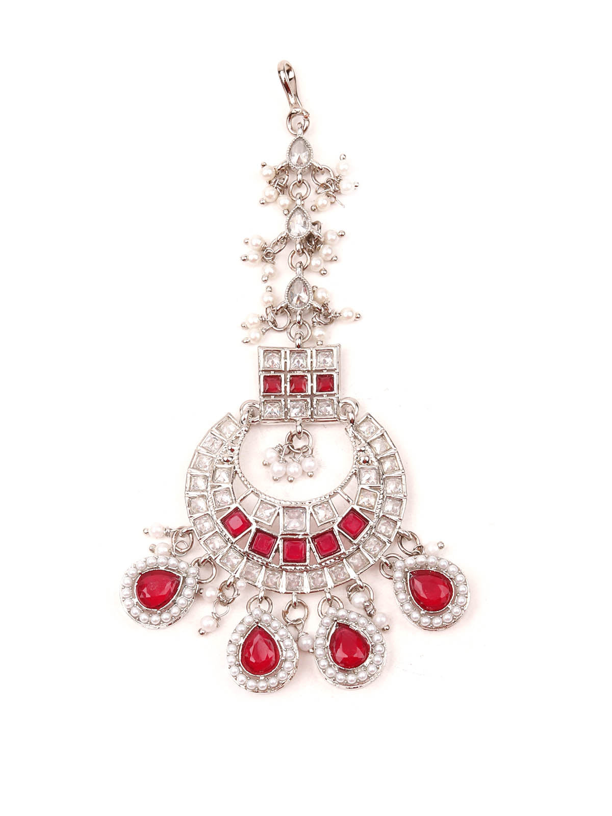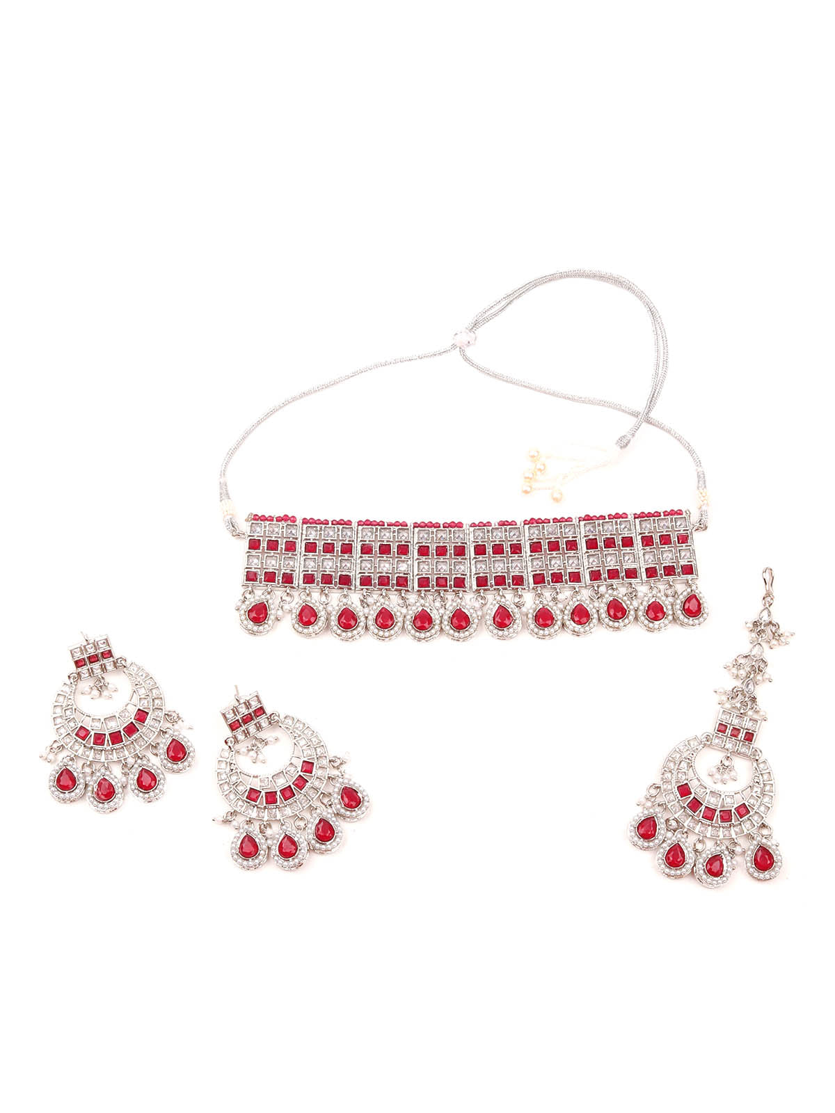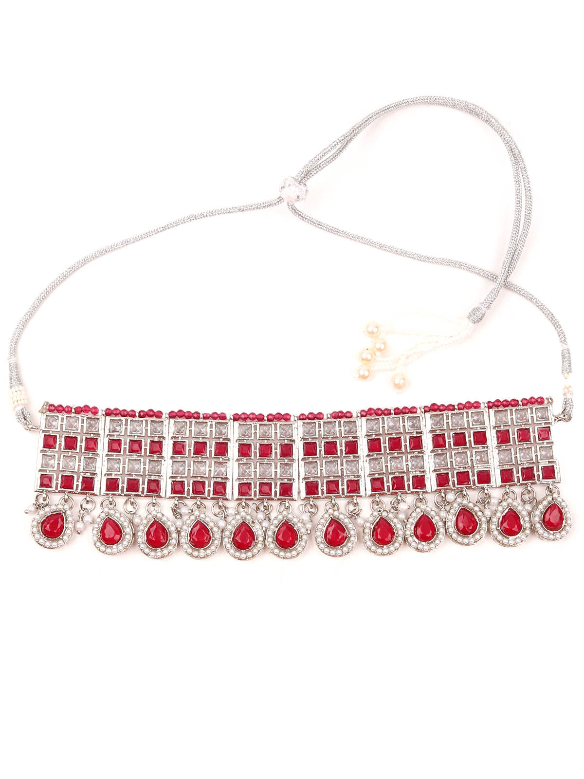 Rajwada Women Red And White Choker Necklace Set