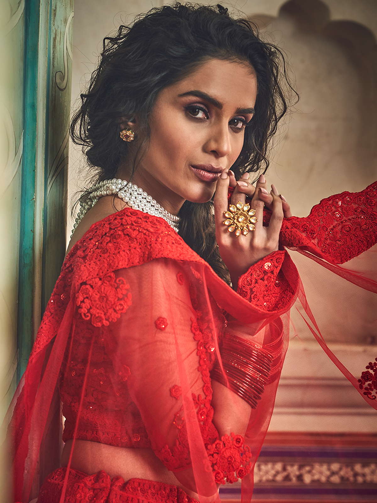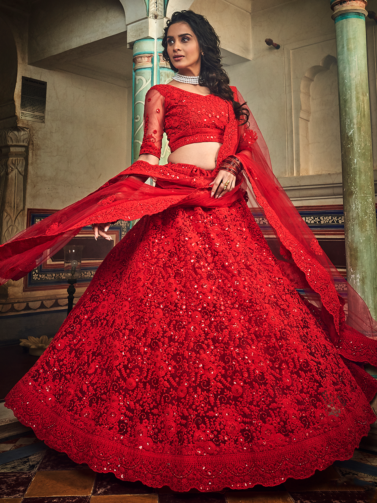 Add light to the celebration called life beaming in this lehenga, choli and dupatta set. Crafted on soft net, the set is beautified with Dori, Zarkan, Sequins work.