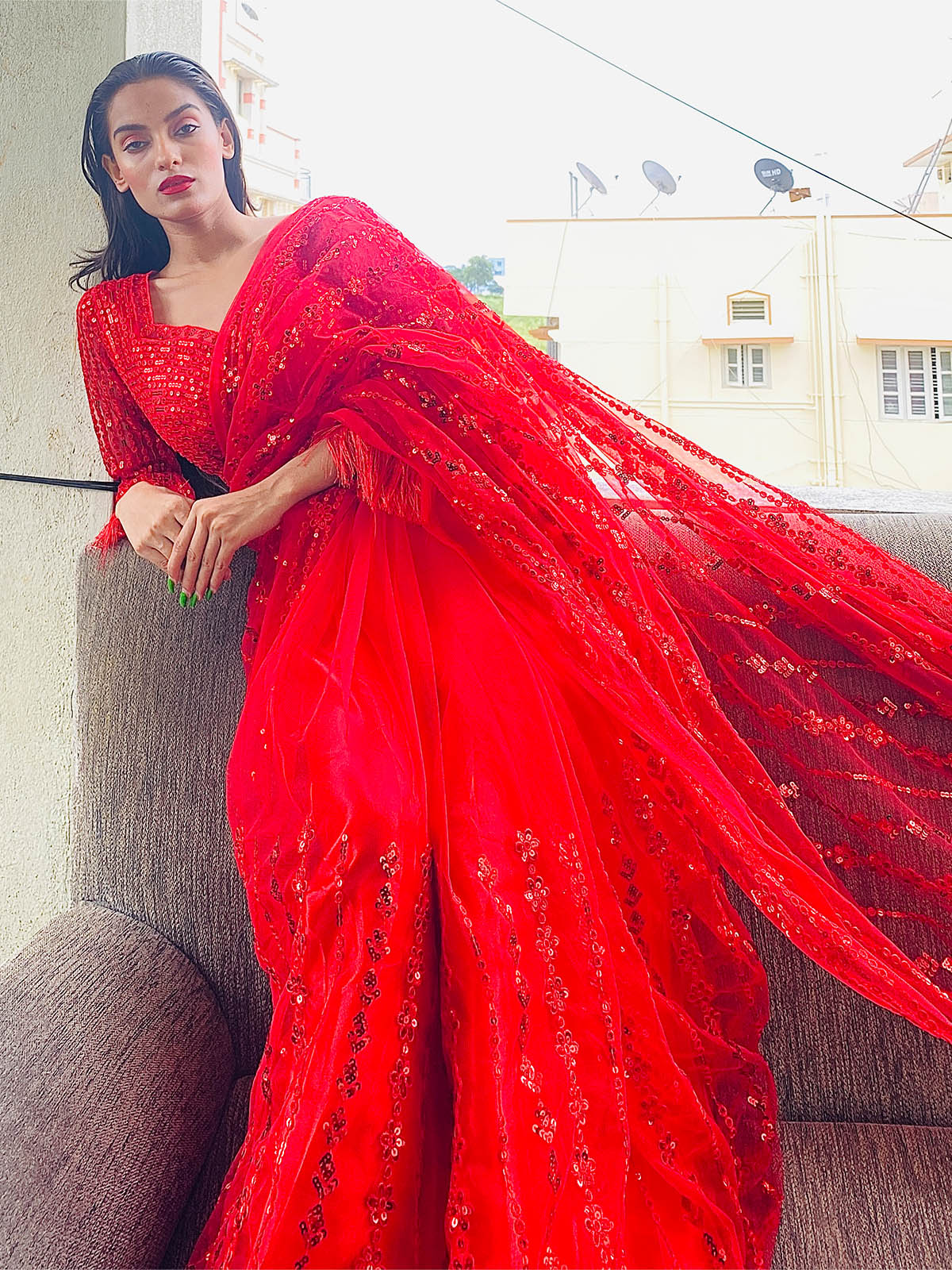 Gift yourself this lovely saree and be the cynosure wherever you go! Style this with a classy clutch and heels and you're good to go!