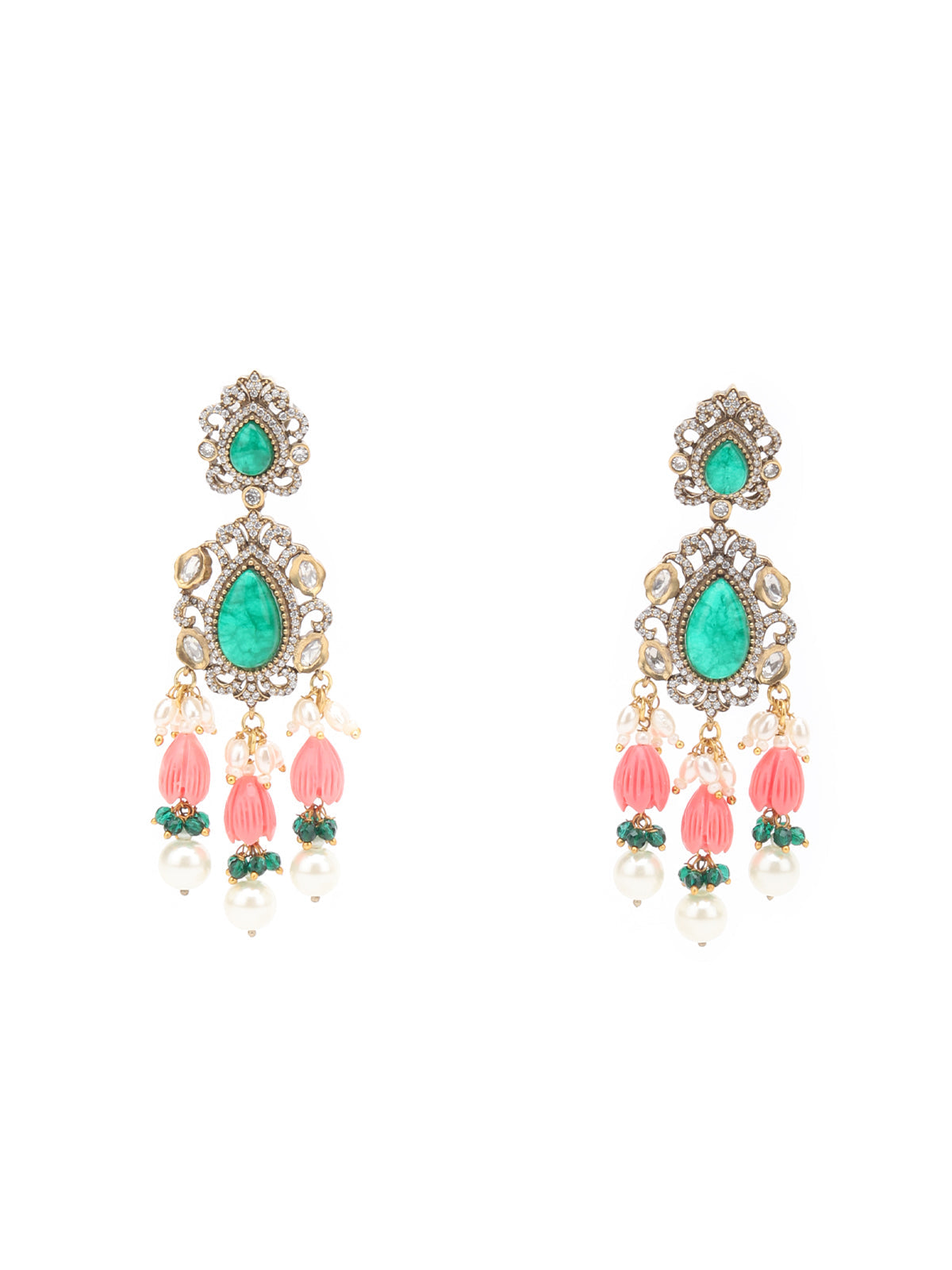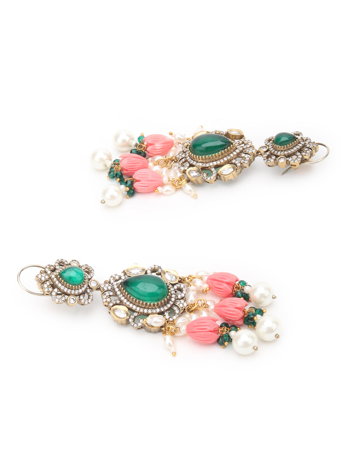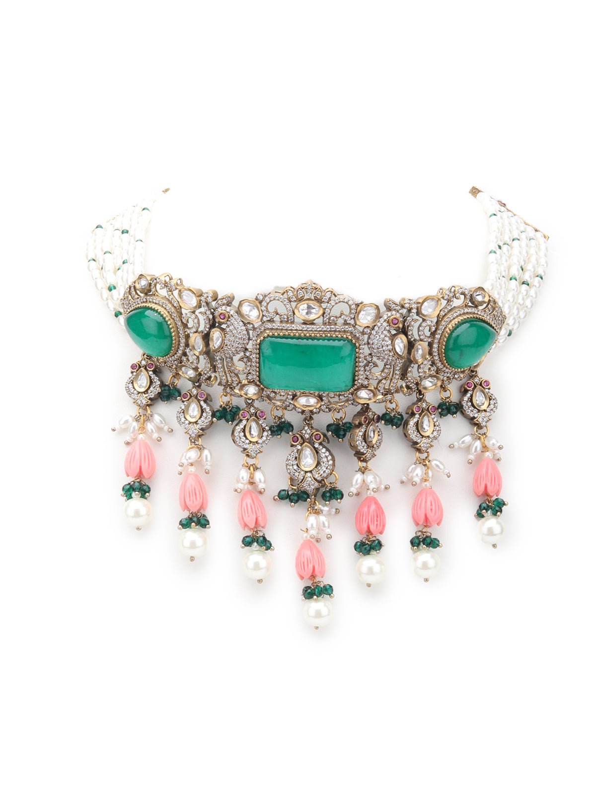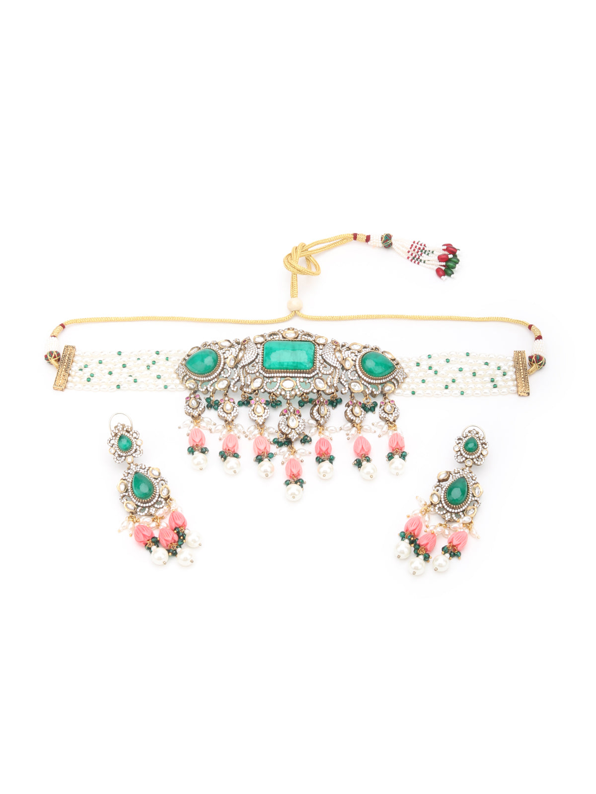 Royal Look- Green And White Beads Kundan Choker Jewelry set