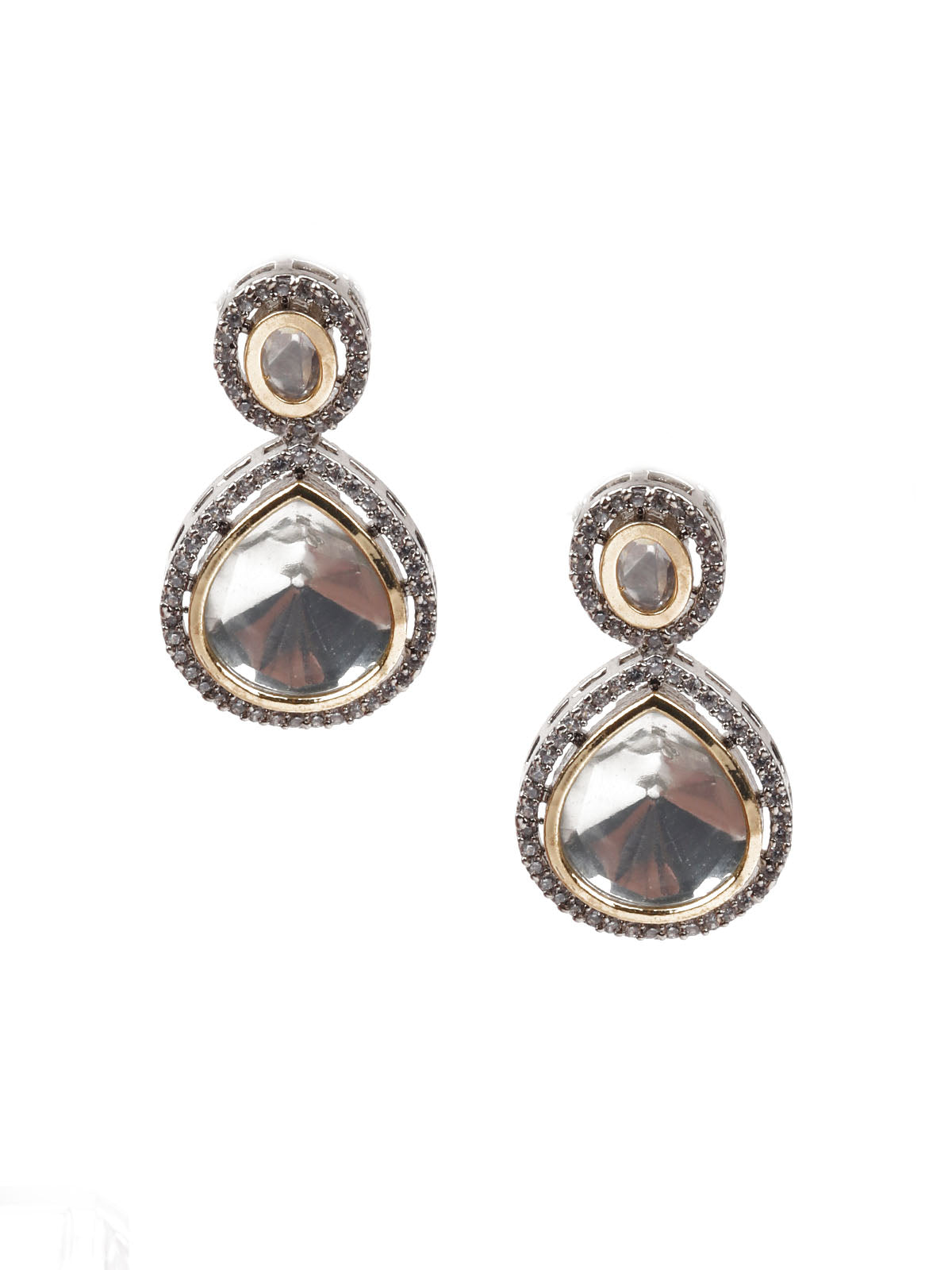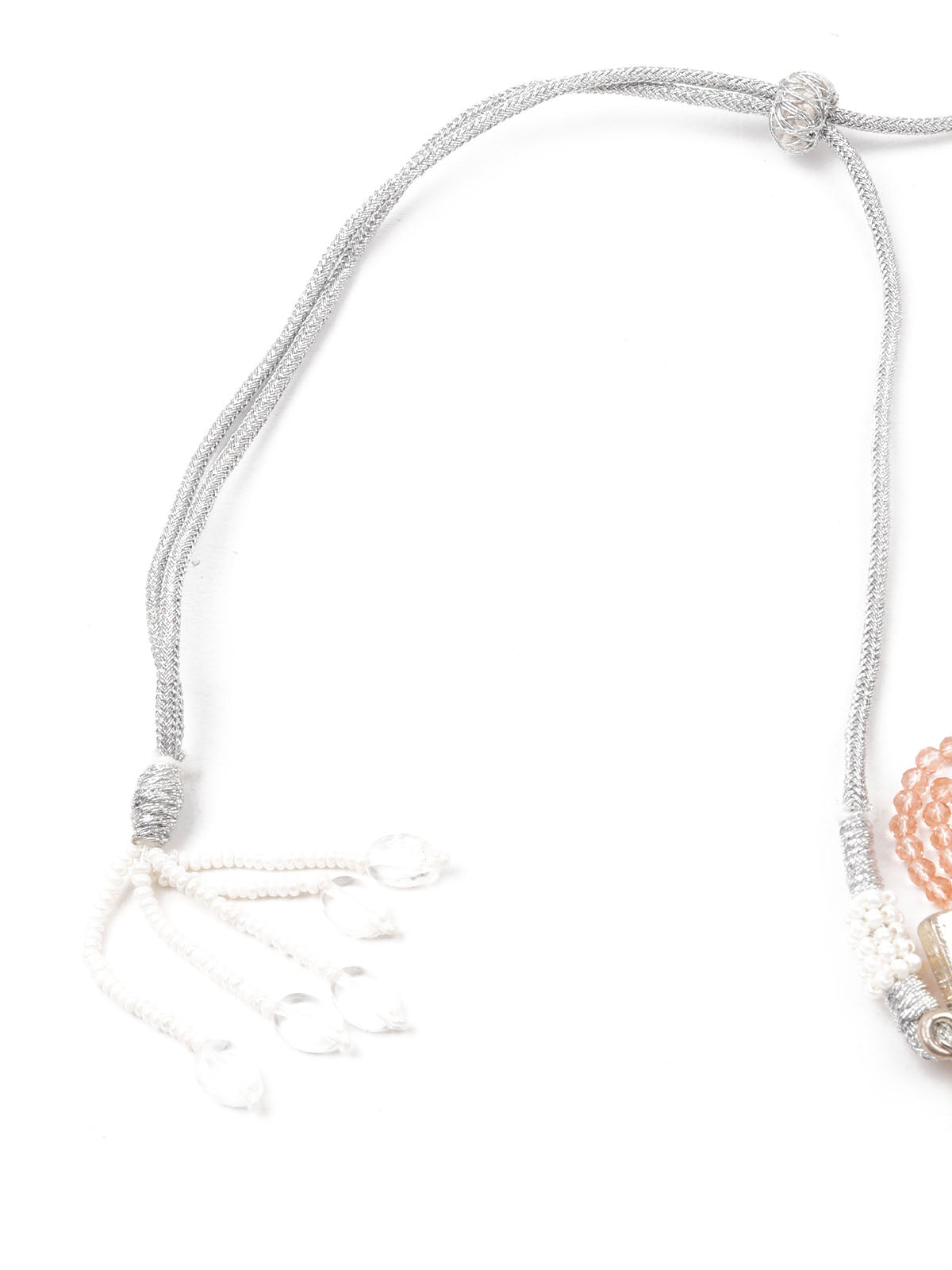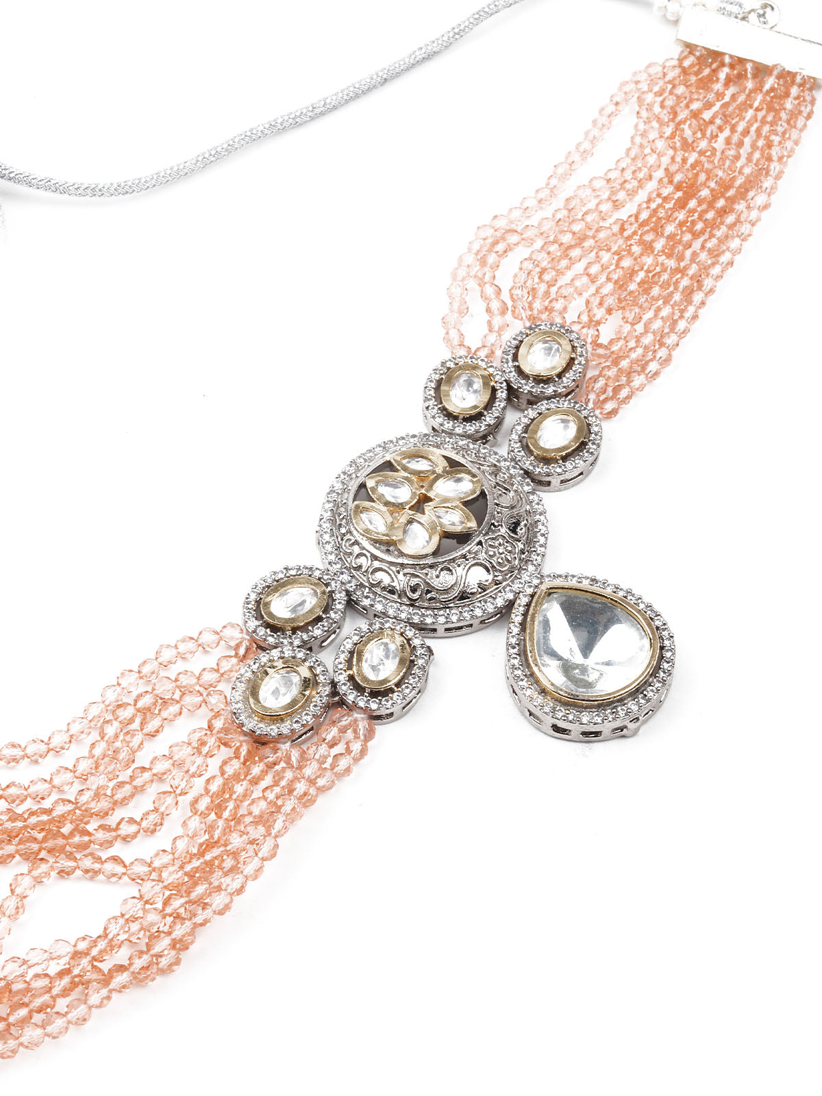 Rajwada Women Silver And Peach Choker Necklace And Drop Earring Set