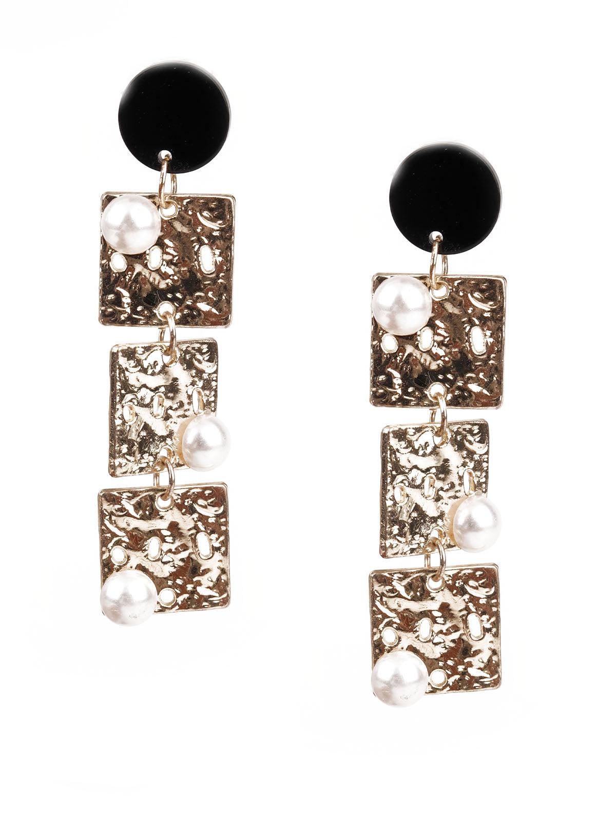 This stylish pair of gold and black dangler earrings is a perfect accompaniment to festive outfits or for evening outings and go well with Western and Indo-western dressing.