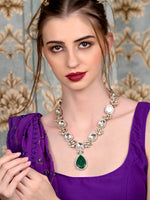 Rajwada Women White And Green Long Necklace Set