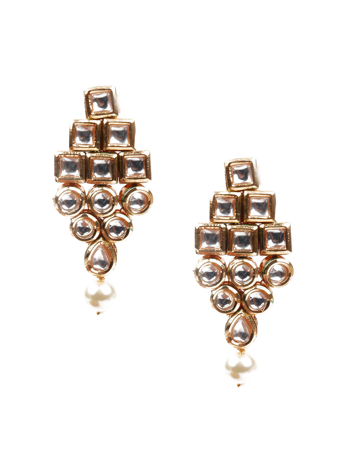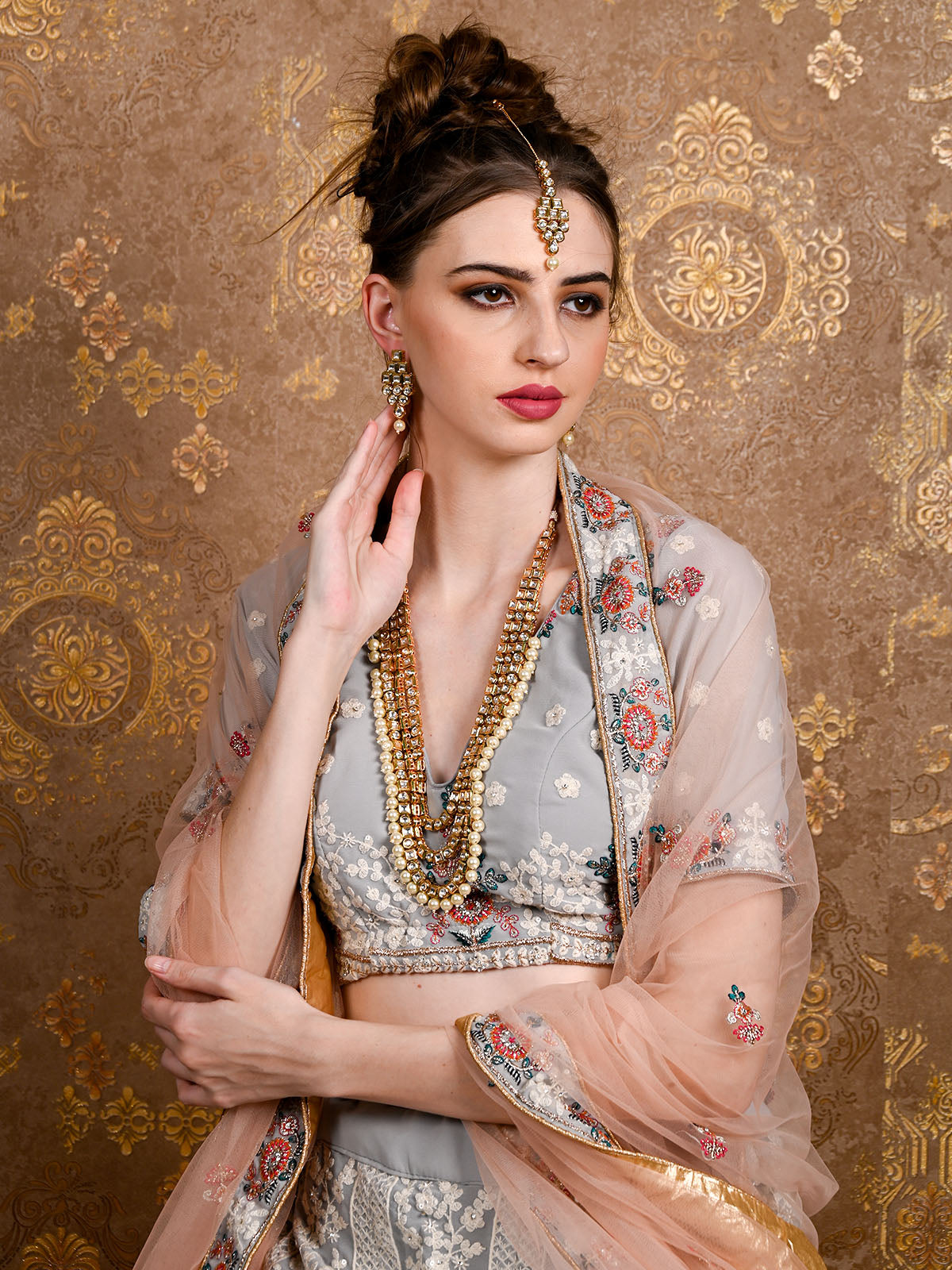 Spruce up your look with this gold plated meenakari and stone studded, long necklace, with matching earrings and maangteeka set. The set is made beautiful with beads, faux stones and intricate work. 1. Intricate design 2. Compliments Indian look 3. Long Necklace Pattern 4. With Matching Earrings and Maangtikka