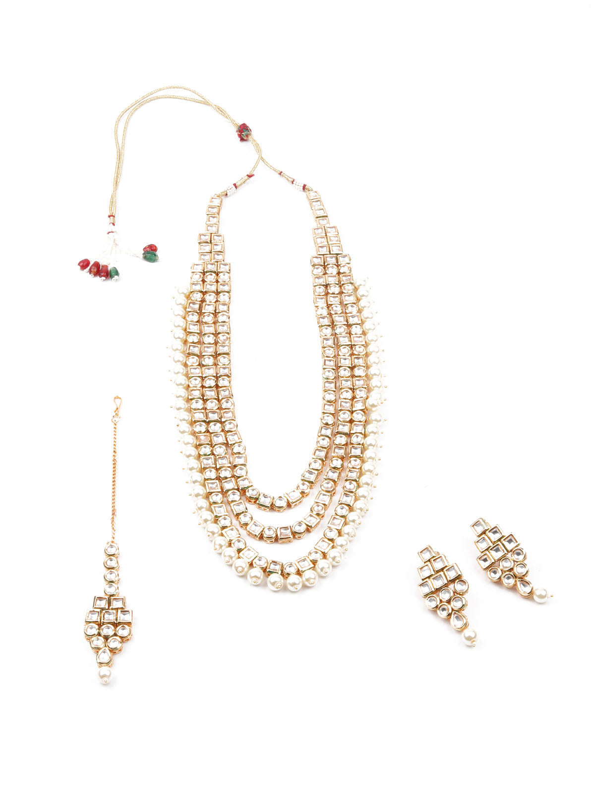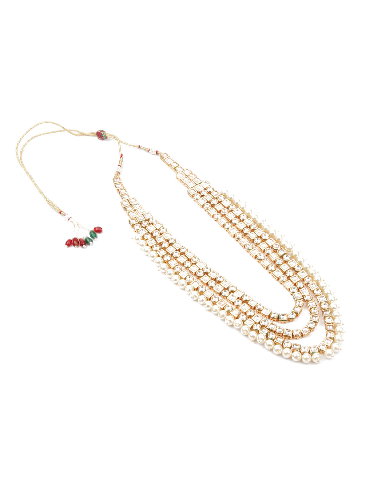 Rajwada Women White Bridal Double Sided Long Necklace Set