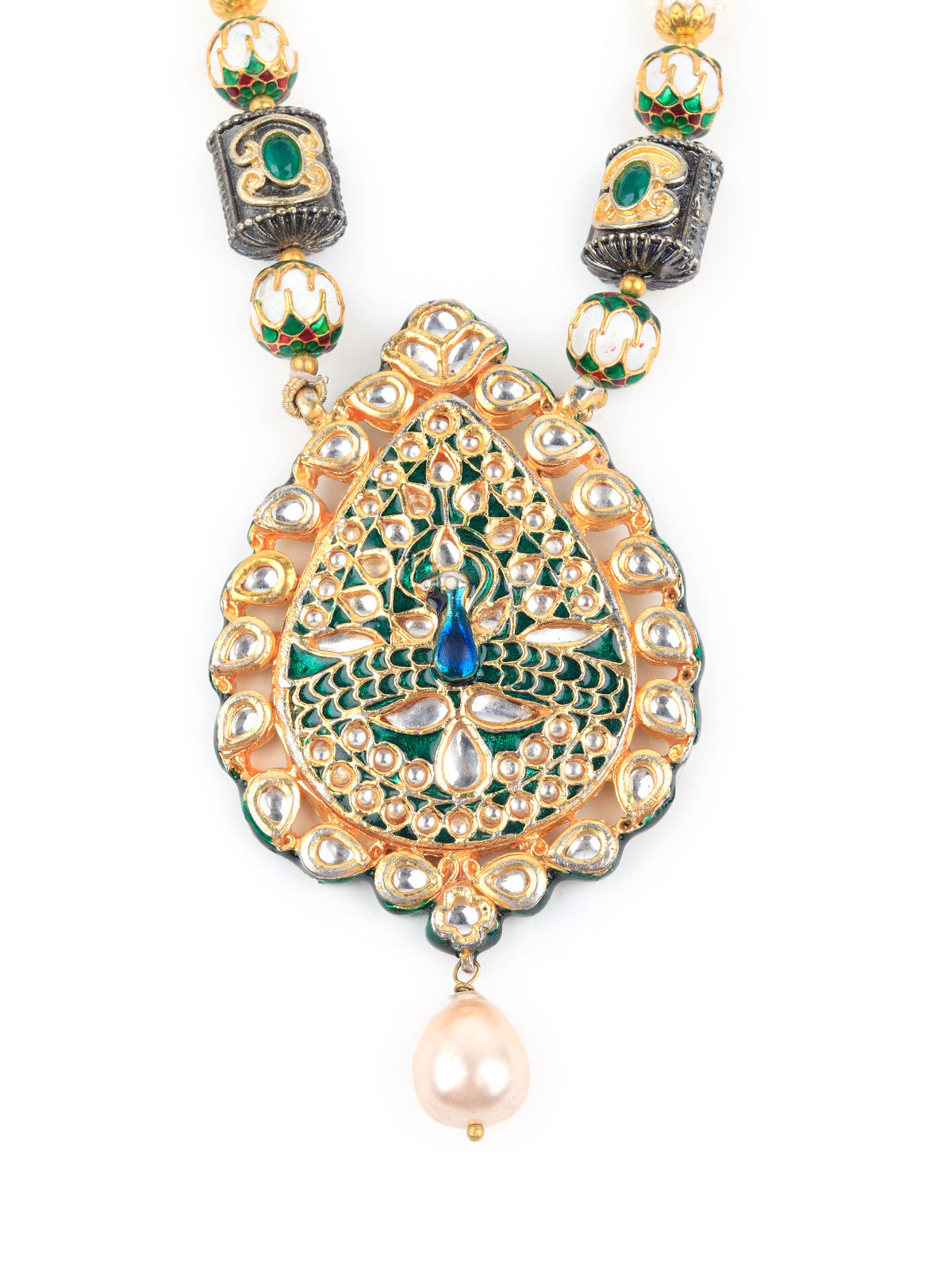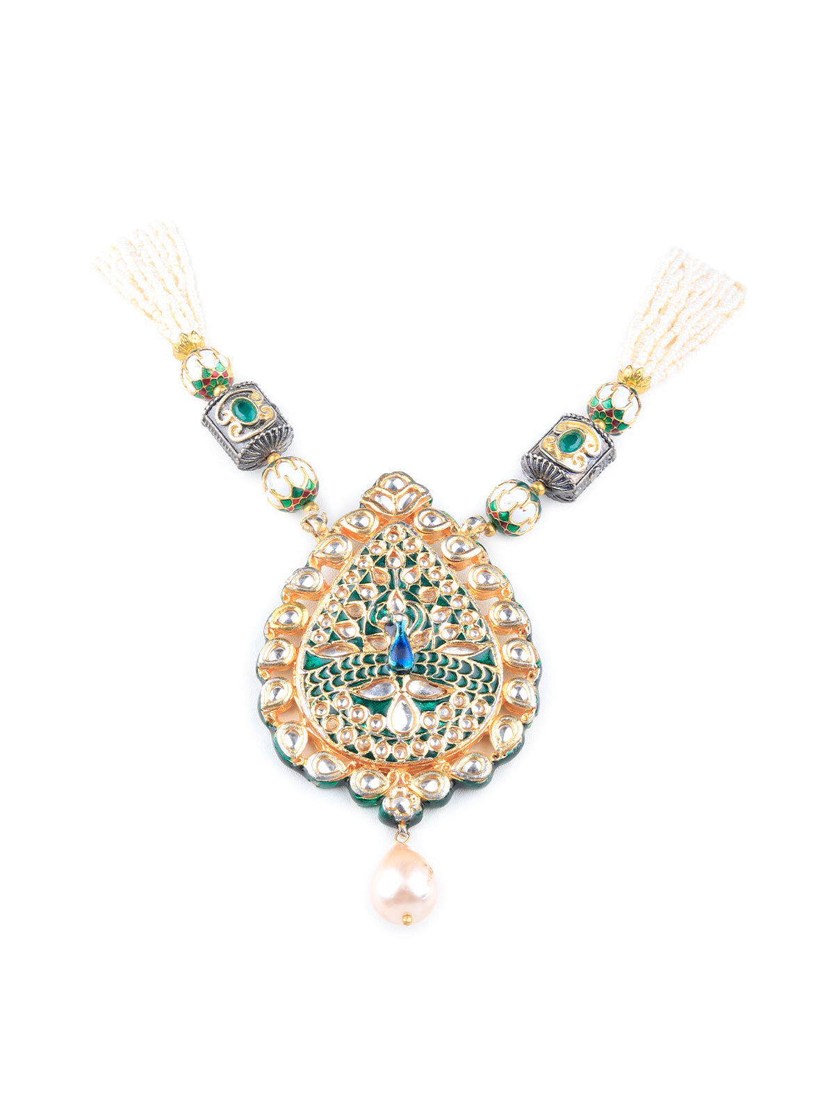 Spruce up your look with this royal looking neckpiece. The necklace is an impressive piece of designing and craftsmanship, and surely a valuable addition to your wardrobe.