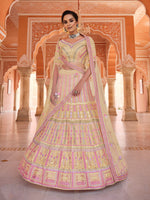 Add light to the celebration called life beaming in this lehenga, choli and dupatta set. Crafted on Organza, the set is beautified with Thread, Gota work.